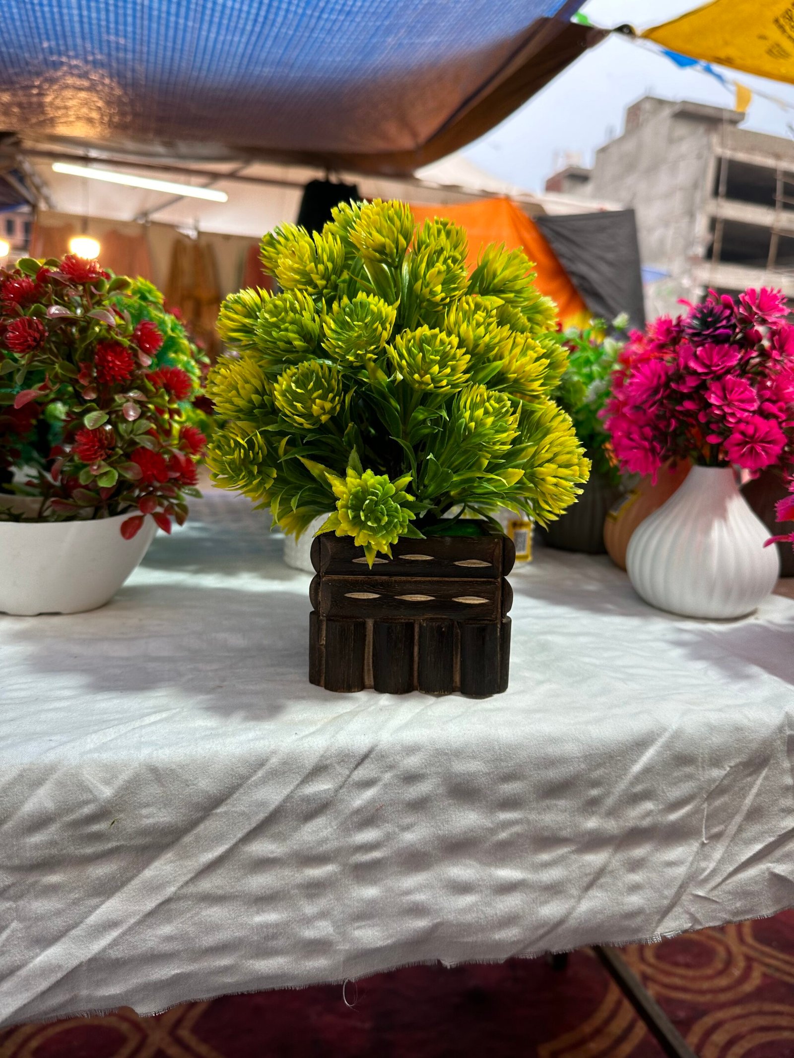 Our exclusive collection includes artificial flowers with pots, artificial bonsai plants, Artificial bamboo plants, Artificial palm trees, and table-top decorative pots. Each product is carefully crafted from durable materials to look natural and stay fresh all year round. Unlike real plants, they require no sunlight, water, or trimming—yet they add elegance and greenery wherever you place them.